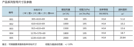 2、MPP测试标准,100%检漏,EN1822效率: H14≥99.995%@MPPS